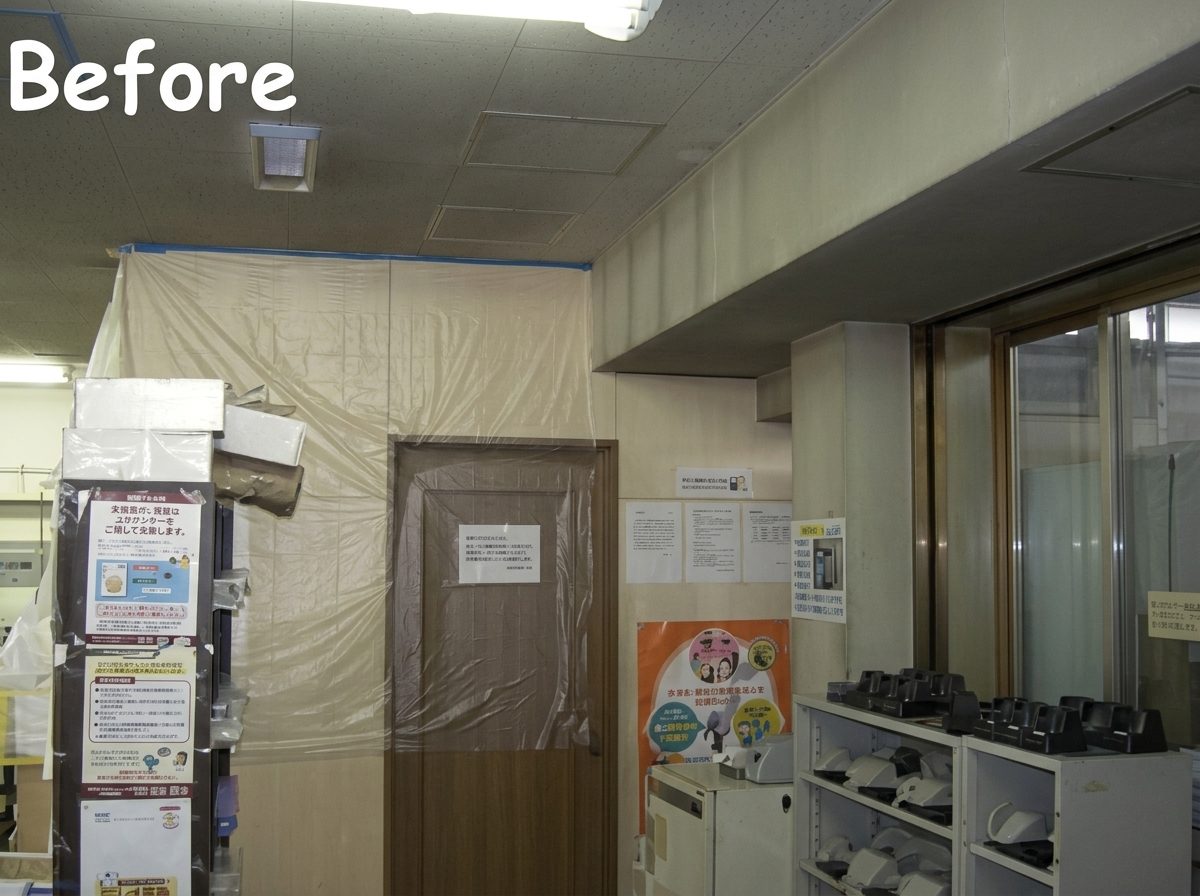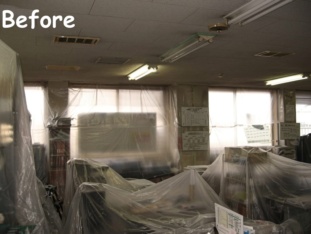 完成写真 塗装工事概要 ・平成20年施工・札幌市・内部壁と天井の塗装 営業中の事務所内部の壁・天井の塗装です。業務に支障がないよう定休日や営業終了後の時間などを利用し、施工を進めました。 ↑塗料がつかないようにすべて物に養生をします。 営業時間外の施工なので、すこしずつ工事を進めていきます。 ↑真っ白な壁で部屋がとても明るくなりました。 同じく天井も真っ白に塗り、綺麗になりました。 施工事例の一覧に戻る