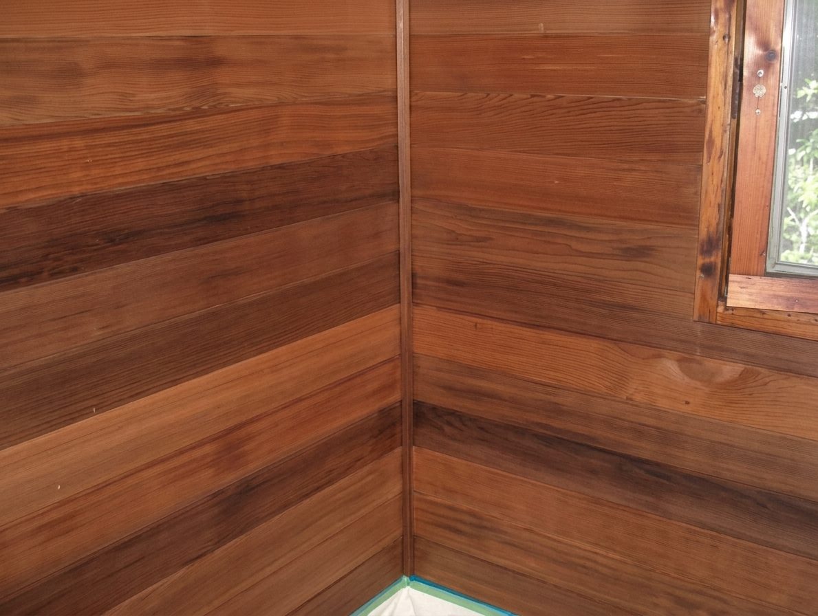 完成写真 塗装工事概要 ・浴室の内部塗装 施工前 施工前 艶がなくなり傷んでいた浴室の壁 木部用防腐塗料サドリンを塗っています。(1回目) 同じサドリンで2回塗り。艶が出るまで塗り込みます。 施工後 施工後 撥水効果があり防腐材の入った塗料で艶が蘇りました。 FacebookXBlueskyHatenaCopy